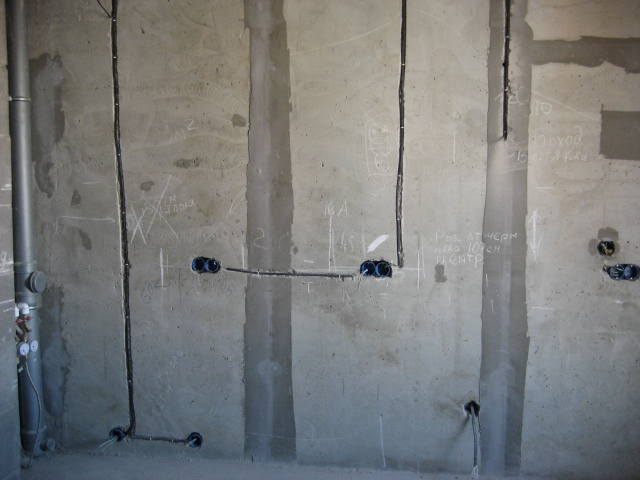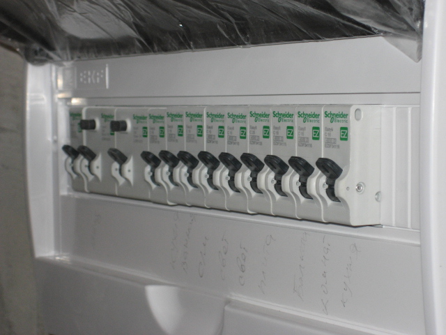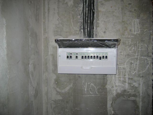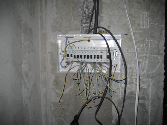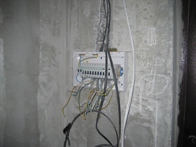 Работы по электрике в 2-х комнатной квартире. Электрика от застройщика, клиент попросил добавить не только новые розетки, но и сохранить старые. Сделали, а так же поменяли щит на простой, но надежный.